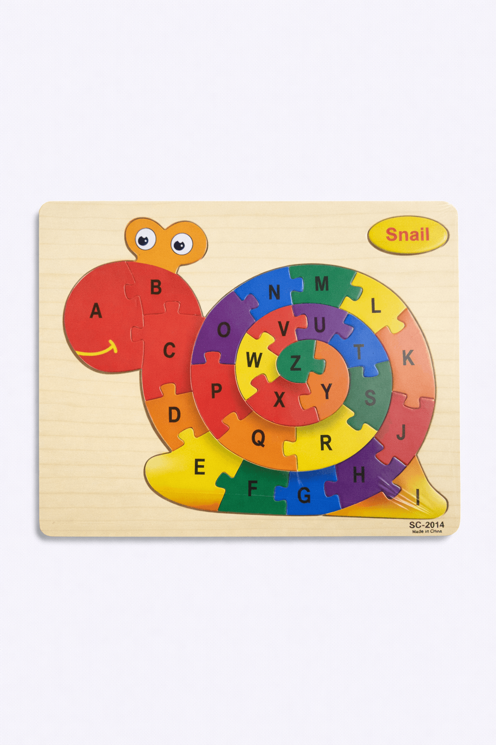 A colourful wooden alphabet puzzle designed to help children recognize letters and improve coordination.