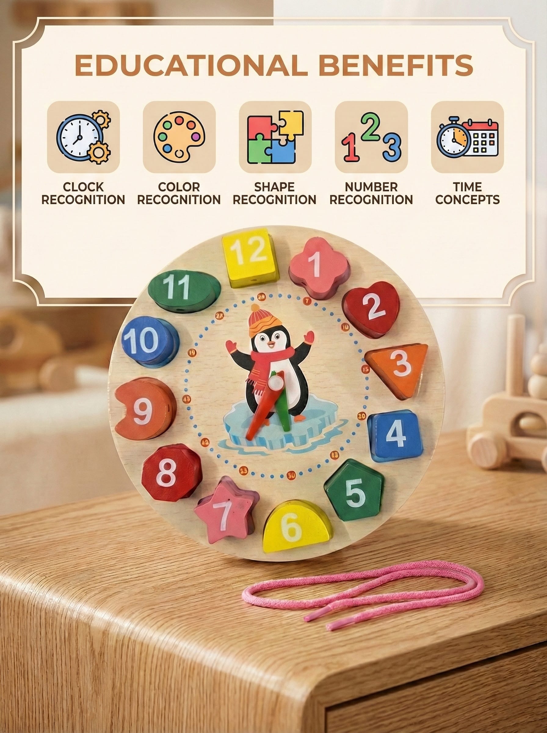 This thoughtfully designed learning combo helps children develop time awareness, logical reasoning, spatial skills, and problem-solving abilities through hands-on play.